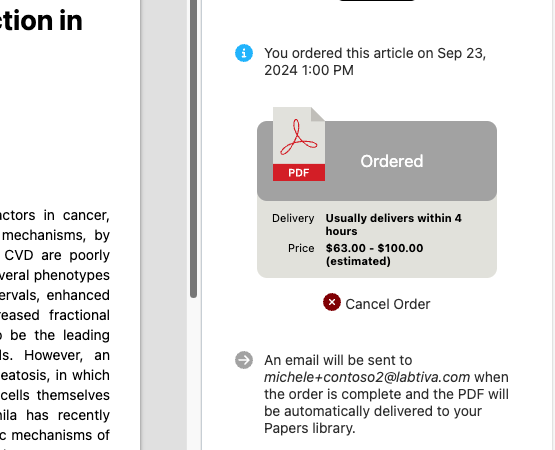 - Order articles directly within your organization's knowledge management system.