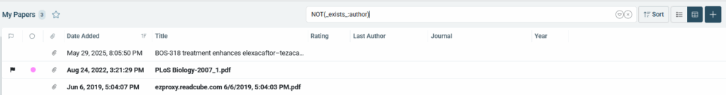 You can also use it to see all of your papers with a rating attached to them. _exists_:rating