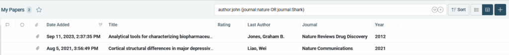 Combining search terms is easy as well. Just type all of your search terms with a space in between. If you are searching for all papers for Elephants and Sharks you just need a “space” but you can also use the AND query. Elephant Shark is the same as elephant AND shark. AND must be capitalized to work