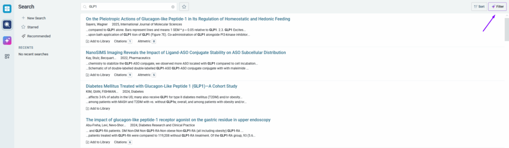 You can use ReadCube’s AI powered filter to tailor your searches to your specific needs. To use ReadCube’s AI powered search filter, do the following: