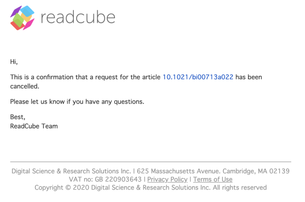 - When the order is fulfilled and the PDF is available, you will get an email notification with a direct link to the article in ReadCube.