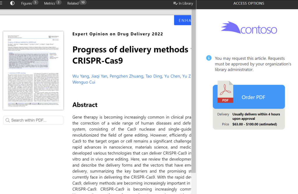 Your researchers must then make two requests that take them out of their workflow and delay the progress of their work. First, they must ask management for budget approval to purchase the full text of the individual article, and then secure funding to cover the cost.