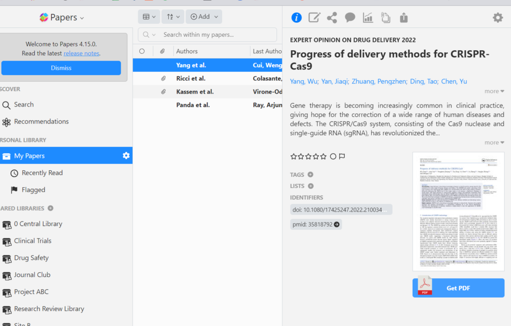 Your researchers search for papers as they normally do on PubMed, Dimensions, Google Scholar, or other journal websites and databases. When they locate an article they need for their workflow, they can easily use ReadCube document delivery to access it with a simple mouse click or finger tap.